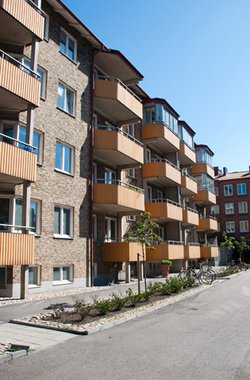 Vårt u-formade hus består av 64 lägenheter, varav 50st 2:or och 14st 3:or. Huset byggdes 1947 men efter stambyte, nya element, renoverade elsystem, gårdsrenovering mm. bor vi ändå i ett modernt hus i bra kvalitet.